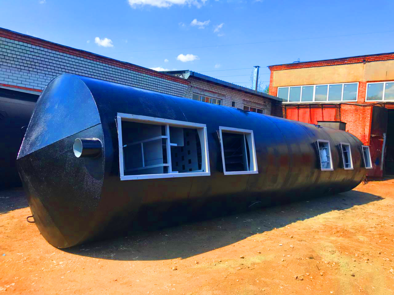 Габариты очистного сооружения: 3 емкости длиной 9800 / диаметром 2400 / весом 17700 кг.